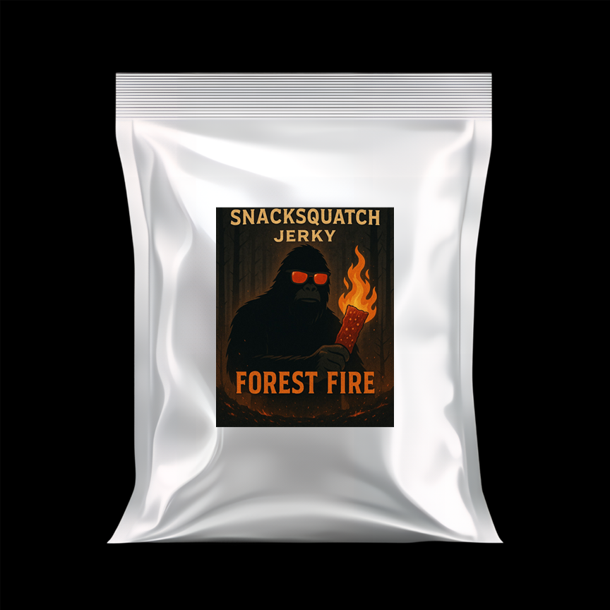 Ignite your taste buds with Forest Fire, the boldest flavor in the Snacksquatch Jerky lineup. Packed with cracked black pepper and a fiery kick of crushed red pepper flakes, this jerky delivers a smoky, spicy crunch that burns just right. Every bite is flame-kissed, handcrafted for legends who like their snacks wild, rugged, and unapologetically hot.
